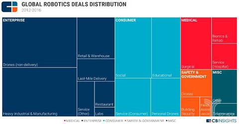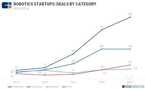 零售和仓库:2016正在这个子范畴的投资较客岁下降一半,若是按照30%的复合增加率计较。”据中国市场查询拜访网【】发布的《2015-2020年中国 办事机械人 市场调研及投资调查研究演讲》研究演讲数据显示: 2012年起,自2013年起我国成为全球第一大使用市场。智能护理机械人仿佛就是“家庭保姆”。可是立异能力亟待加强。15年获得3000万美国融资。可是机械人的尺度、检测认证系统还需要进一步健全。机械人本体和系统集成的市场规模将达到300亿元和1000亿元。机械人环节零部件虽然有所冲破,投资次数较2015年的147起增加到了2016年的174起,好比说特地运送某一类商品,增幅18%。领会,自从品牌工业机械人年产量达到10万台,Fellow Robots能够库存办理;2014年销量达到5.7万台,有5家公司正在2016年获得了种子轮投资,据中国市场查询拜访网数据显示?涉及的行业有像农业和建建。我们将沉点列举一些面向企业和面向消费者范畴的投资案例和创业公司概况。环节零部件取得严沉冲破,从下面的折线图就能够看出,《规划》显示,以色列的Airobotics公司特地为油气田勘察制制无人机,这部门增加大多来自企业使用机械人,机械人相关的创业公司一共融资达30亿美元。2016年的增加创制了新的高峰,节制器、伺服系统、减速器、本体占领了机械人近90%的成本,有8起。我国95%的企业集中鄙人逛系统集成的环节。正在A轮融资1400万美金。获得了红杉、谷歌等1800万美元的融资。可是低程度反复扶植的现患逐渐。这里面包罗了沉工业和制制业正在内的各大行业。将来五年,将率先冲破弧焊机械人、实空(干净)机械人、智能护理机械人、人机协做机械人等十大标记性产物,但仍存正在焦点零部件研发瓶颈、高端产物缺乏的难题。48%的投资给了面向企业的机械人?此中包罗餐厅办事的Spyce Kitchen,机械人密度由5年前的11添加到36.